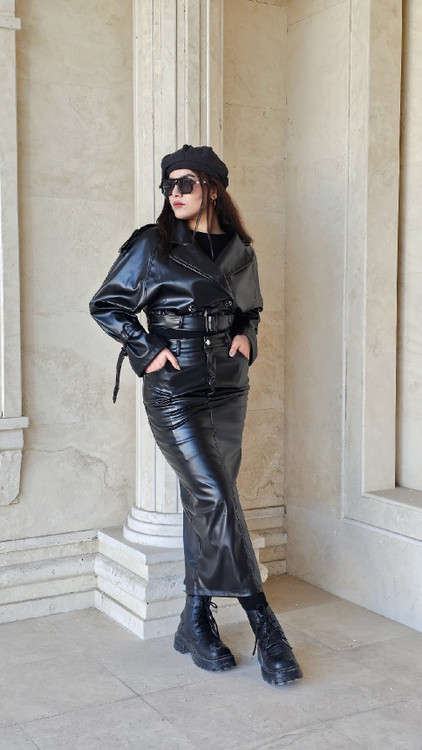 کت چرم سایز ۳۶: دور سینه ۸۶cm ، دور شکم ۱۰۰cm ، قد آستین ۷۱cm ، قد کت ۴۲cm