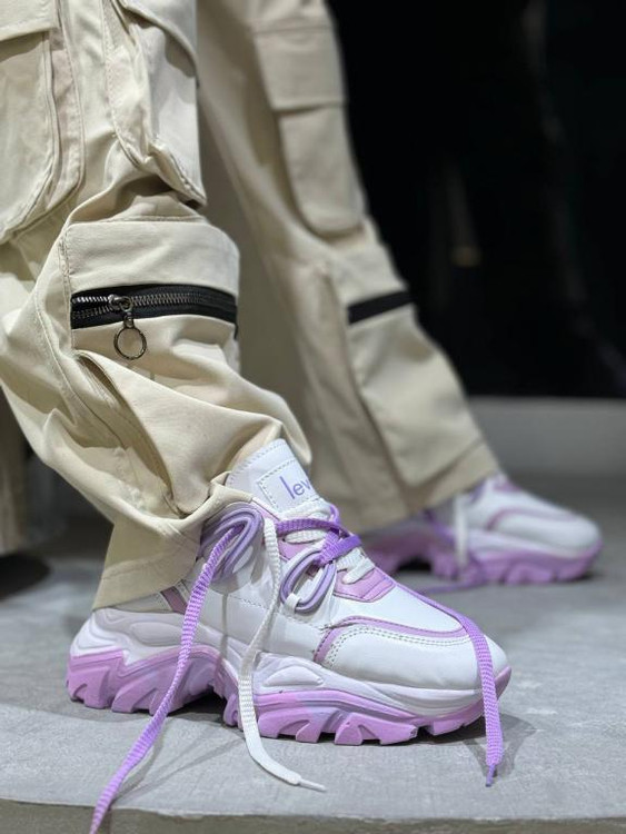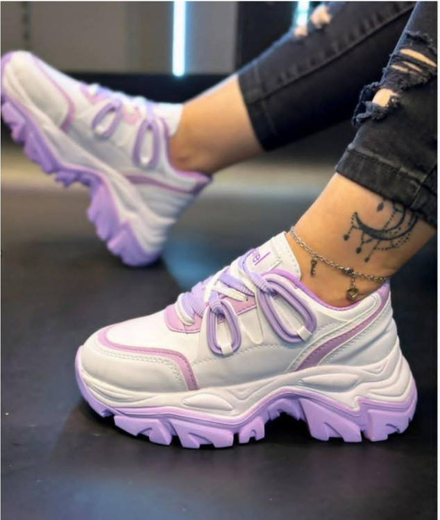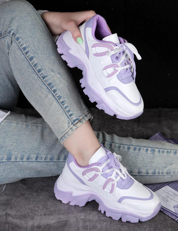 کتونی زنانه مدل گوشواره ای یاسی و سفید