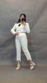 پشت شلوار زیپ میخوره و تک رنگ سفید هست