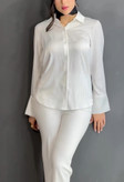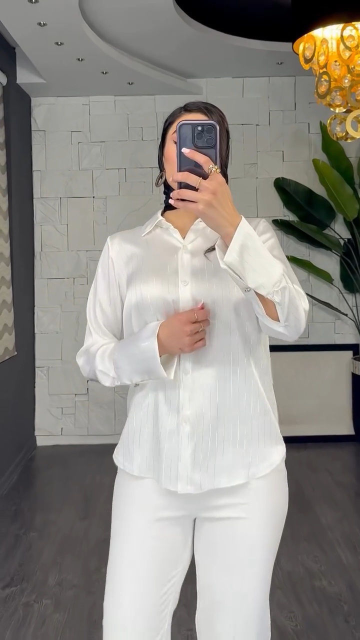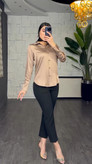 سایز ۳۸ : دور سینه ۱۰۸cm ، دور شکم ۱۱۰cm ، قد آستین ۶۲cm ، قد شومیز ۶۶cm