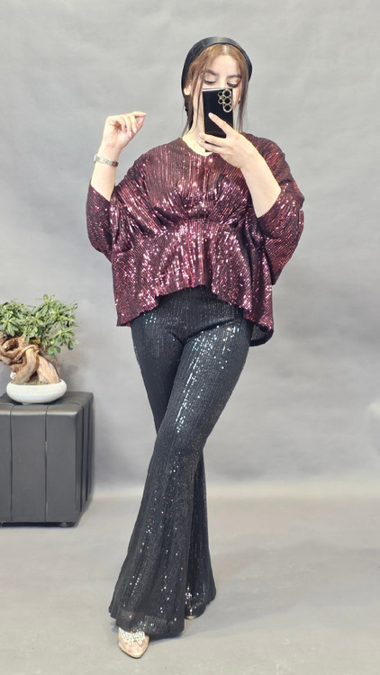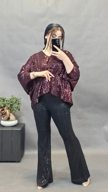 خیلی راحت میشه با شلوار پولکی یا شلوار پارچه ای و دامن استایلش کرد