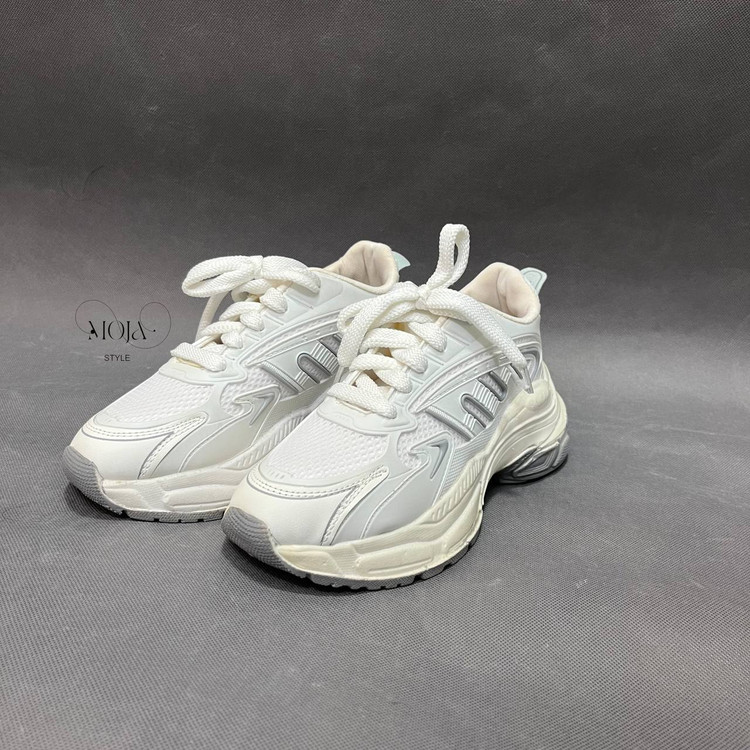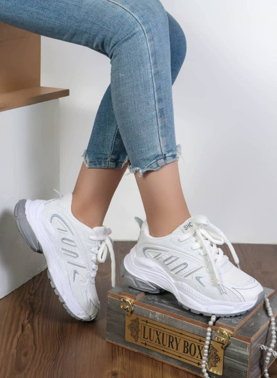 کتونی بندی پختی لژ دو رنگ سفید و طوسی زنانه