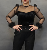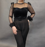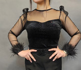 شومیز مجلسی زنانه مخمل لمه و حریر یقه گرد آستین پردار
