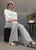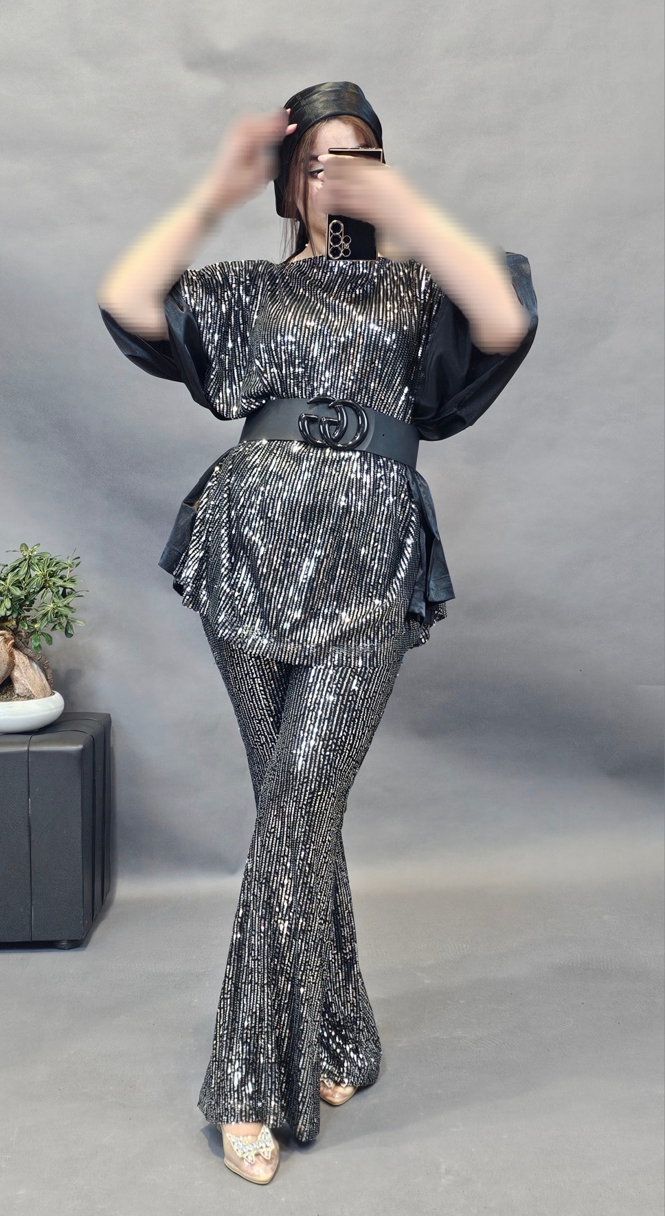 جنس شومیز : پارچه کرپ و دور یقه و سرآستین پارچه پولکی